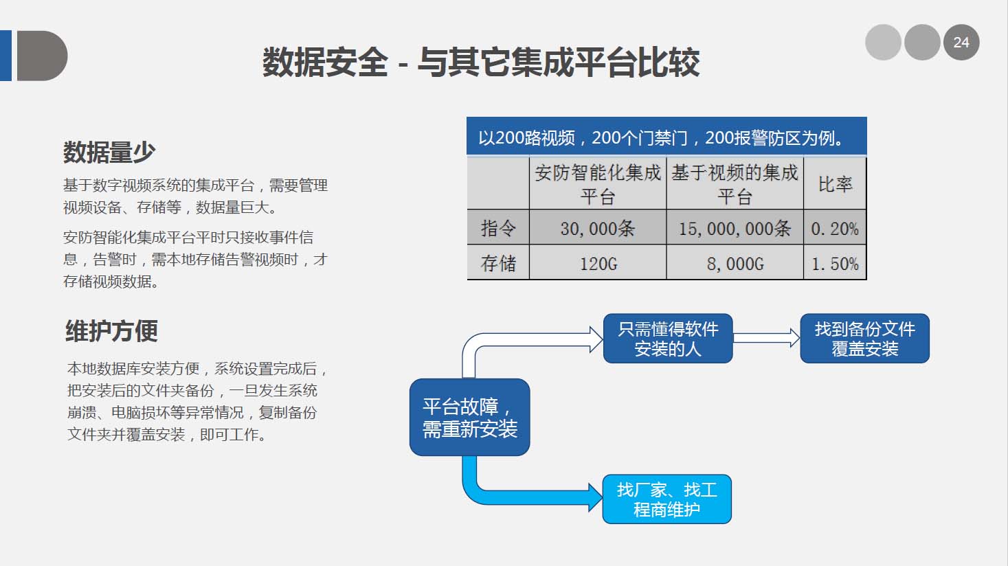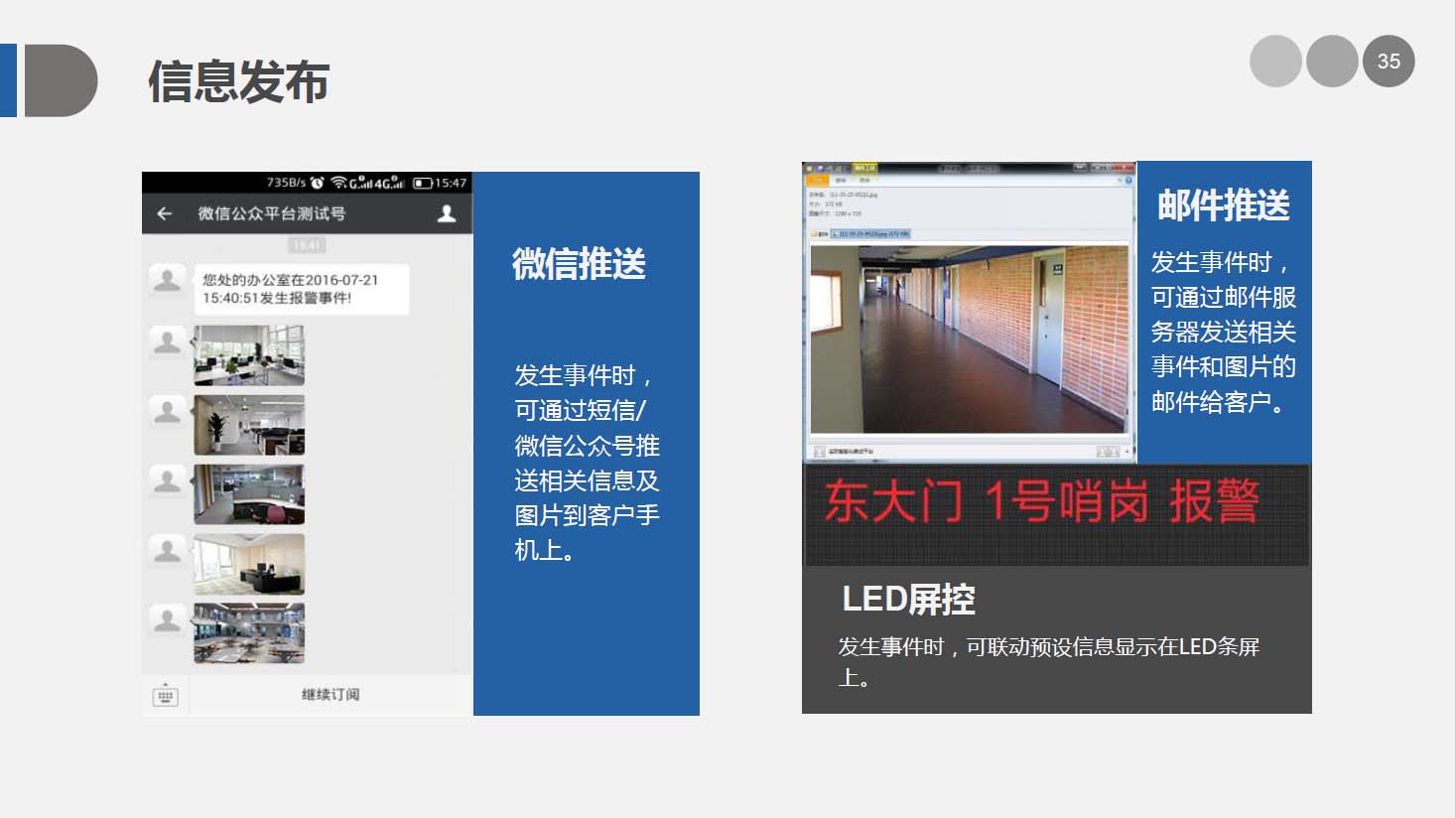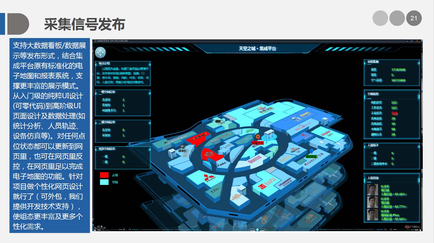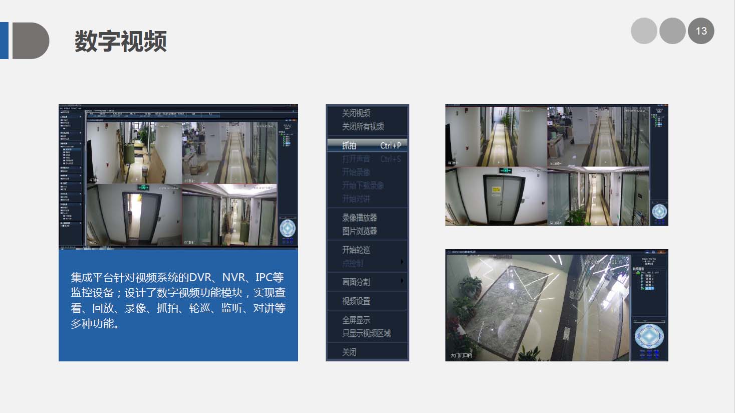 安防智能化集成平台能实现对视频、门禁、报警、对讲、巡更、车辆管理等多个子系统集中控制,统一调度使用,实现各个子系统之间的联动操作及管理。高度智能化的综合安防管理平台应具有适应于各种不同需求的网络架构、高度的可靠性、良好的人机交互界面、易于管理及维护、学习简单及操作方便等特点。