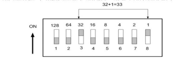 模块 “On”字样朝上(线朝下),二进制编码,从右到左(1 2 4 8 16 32 64 128)