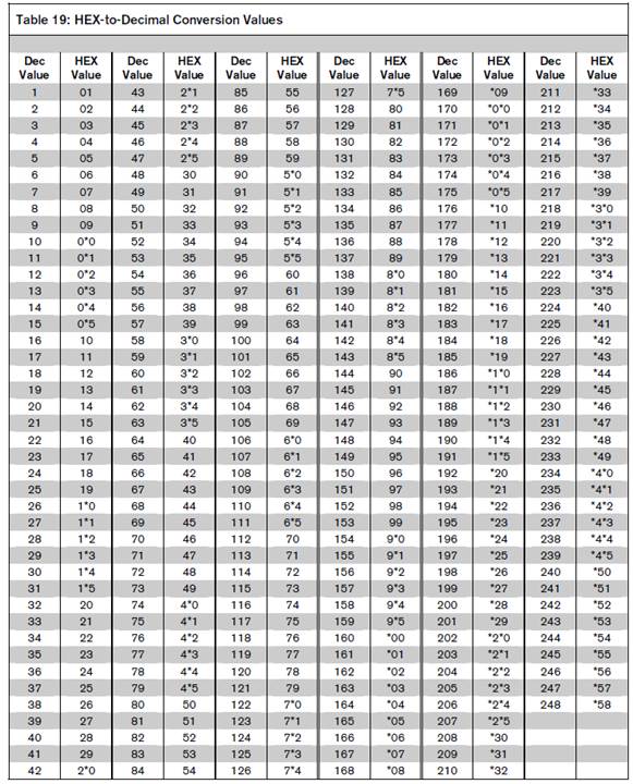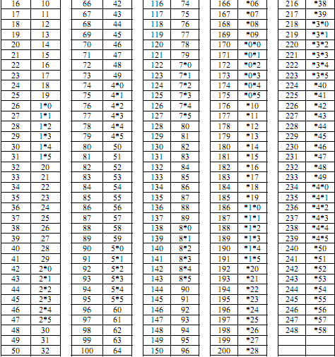 功能号设置所需的编程码地址对照表: