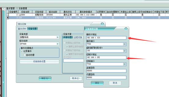 2、设备IP地址的添加(接收地址:是电脑IP地址;控制地址:电脑虚拟的网络地址)就是电脑是双网卡地址。