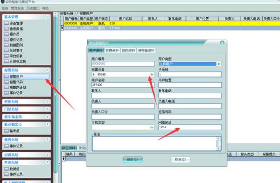 3、报警用户的添加,所属设备添加对应的驱动。网络地址:编程过程的用户账号