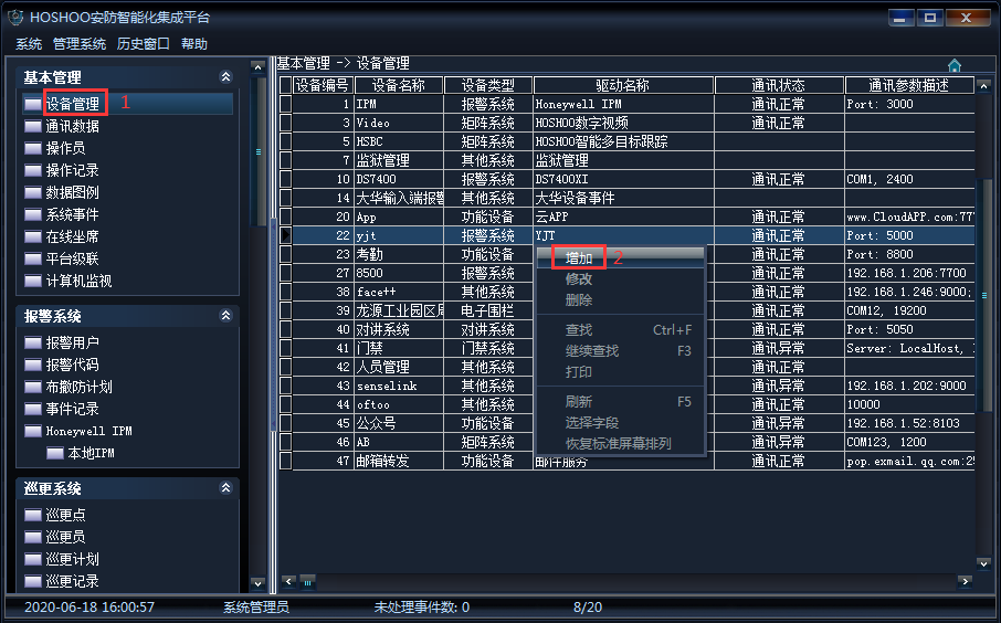 1、《设备管理》→右键菜单《增加》,如下图所示: