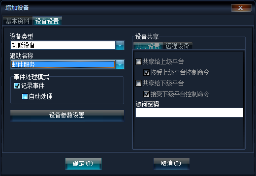 2、《类型选择》选择功能设备,《驱动名称》选择邮件服务,如下图所示: