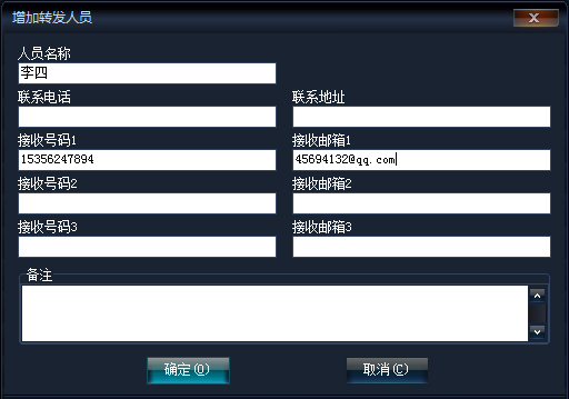 接收者:可以直接填写或下拉框选择(下拉框选择参考转发人员管理);