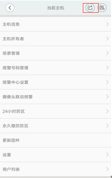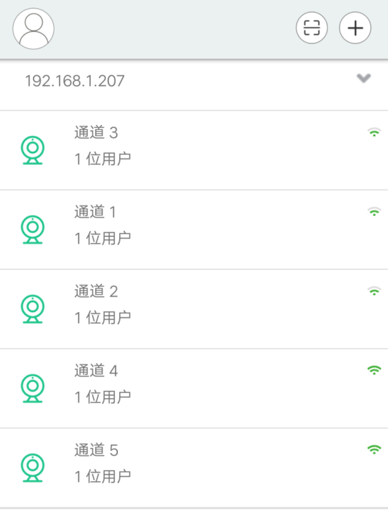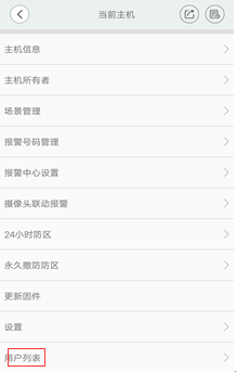 会显示如下图;点击如图中红色方框中的按钮,会显示一个二维码,使用另外一个账号登录使用如图上方的扫一扫按钮即可添加摄像机的二级用户。