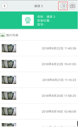 4. 点击进入所选通道,可以查看该通道的信息如下图所示,使用左上角的摄像机按钮可以进行抓拍,并记录事件到安防智能化集成平台端和APP端;点击图片列表中的图片会显示大图。