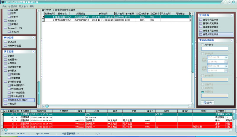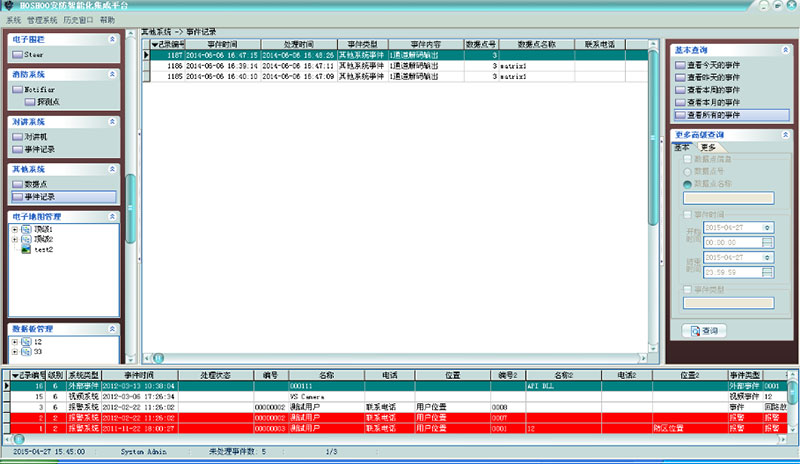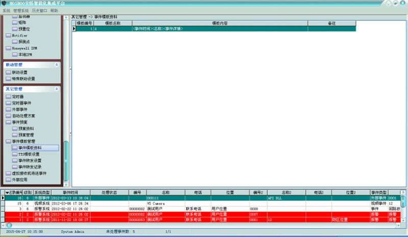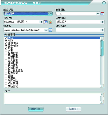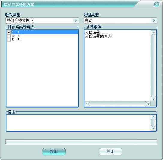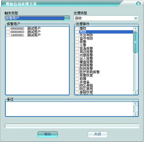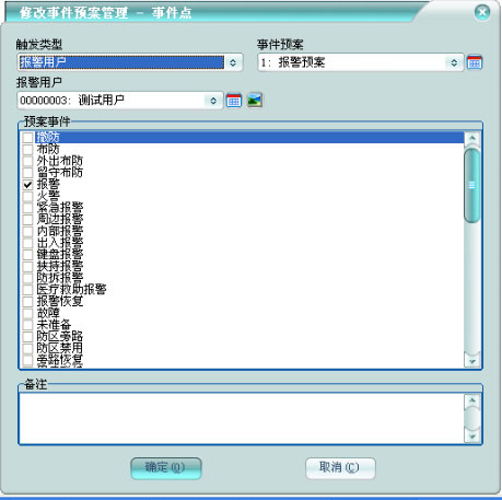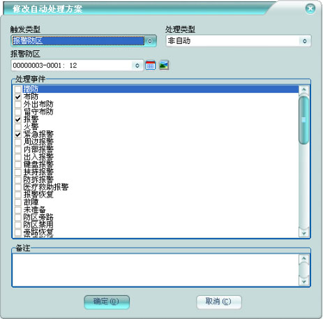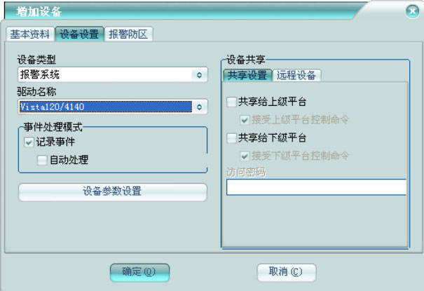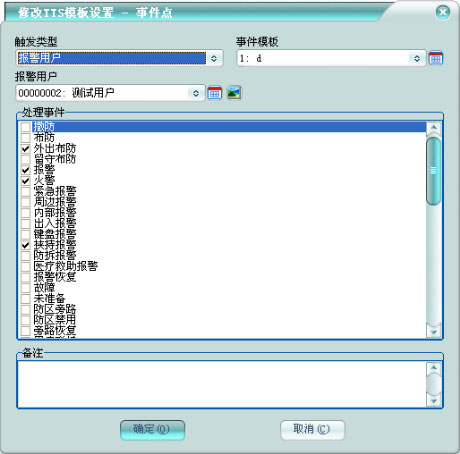 事件处理模式:可设置该设备的事件是否记录及是否自动处理。以便在多级平台的应用中,对共享设备的事件处理提供灵活的处理模式。