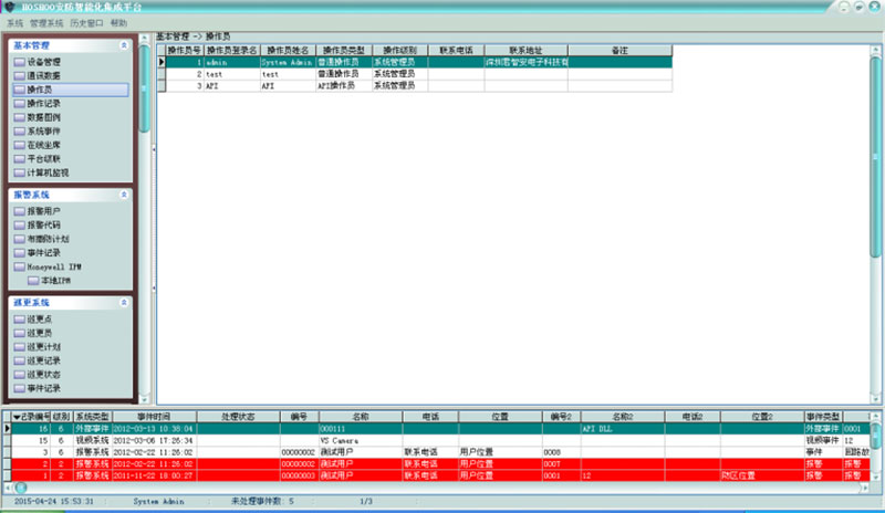 在平台软件中操作面板里的基本管理面板组上,点击【操作员】,功能区将显示操作员数据网格,如下图: