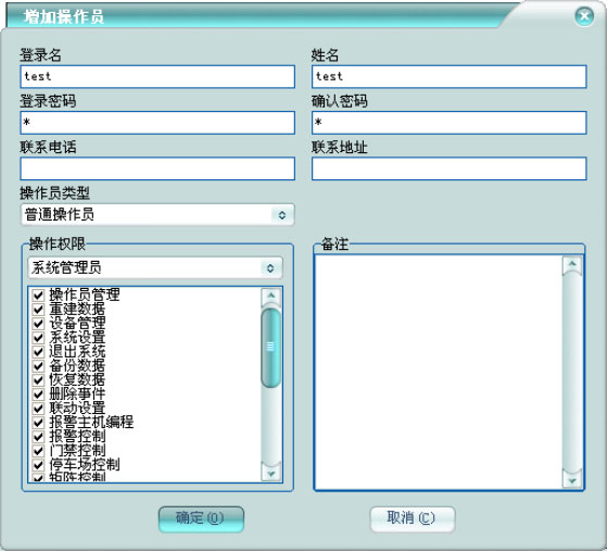 右键菜单,点击【增加】,将弹出增加操作员框,如下图: