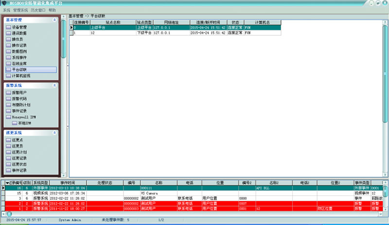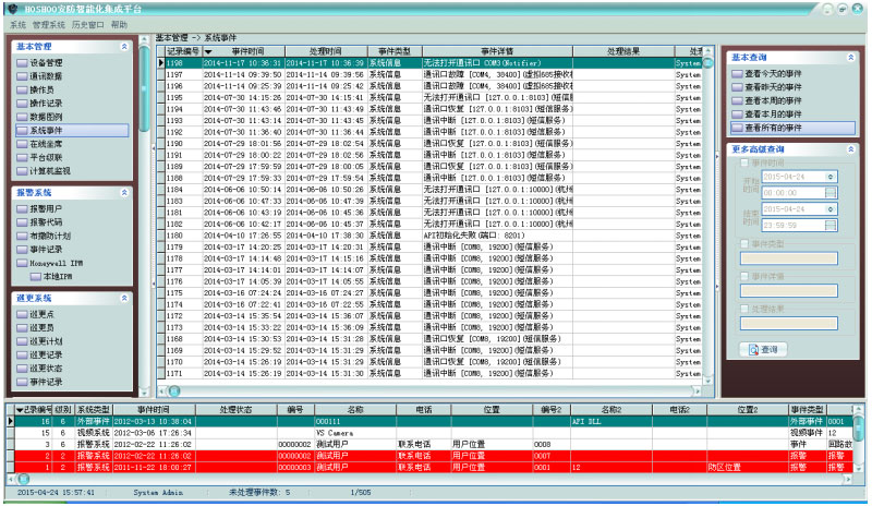 专业安防报警系统,可接收报警,并控制报警主机。支持: 4140、Vista120、Vista 50、Vista 250、IP2000、Honeywell IPM、 DS7400、DSC、DSC4401、DSC5401、GE-NX、Risco、EMB NAM、SELCO、IP7400、YJT、BM1600、HOSHOO等大型报警主机或网络模块。