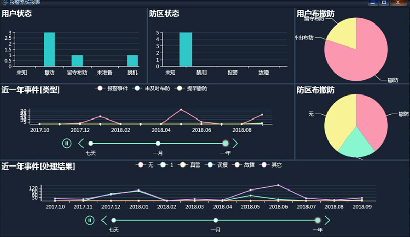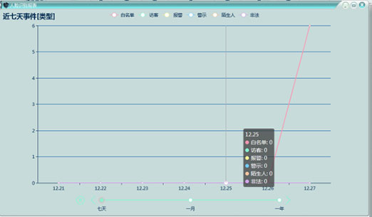 统计最近七天、一个月每天的各类人次及最后一年每月的各类人次,且具备实时刷新能力;通过表报的形式可以清楚明白的展示。