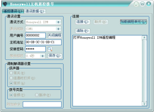 在平台软件中操作面板里的基本管理面板组上,点击【通讯数据】,功能区将显示通讯数据框,如下图: