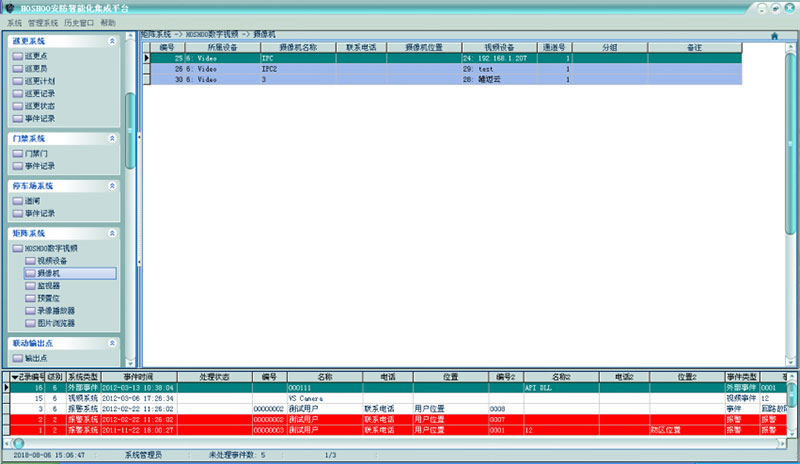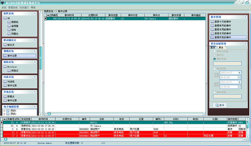 集成专业视频系统,向视频系统发送联动命令进行视频复核。支持: H3C、杭州天视、华为、HOSHOO标准视频集成等视频系统。