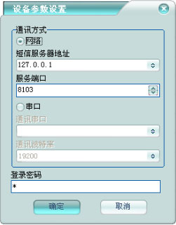 短信设备选择:选择短信驱动设备,并进行设备参数设置。