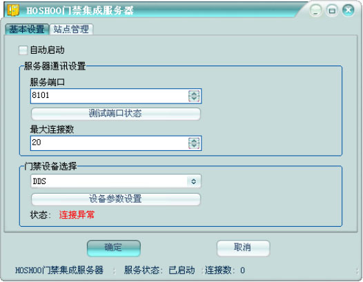 服务器通讯设置:设置服务端口及最大连接数或者通讯串口及波特率,并设置登录密码,默认密码是1。