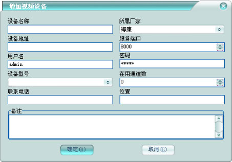 摄像机名称:该摄像机在平台中的摄像机名称,不允许重复。