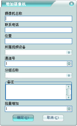 批量增加:批量增加多个摄像机,多于1时,对摄像机名称和通道号自增。