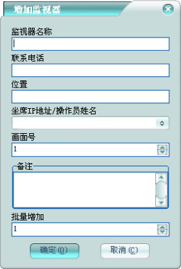 批量增加:批量增加多个监视器,多于1时,对监视器名称和画面号自增。