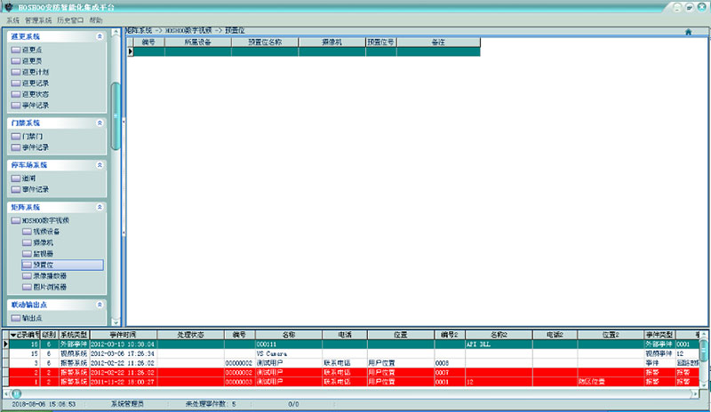 在平台软件中操作面板里的监控系统面板组上,点击【HOSHOO数字视频】下【预置位】,功能区将显示预置位数据栅格,如下图: