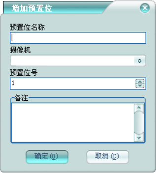 右键菜单,点击【增加】,将弹出增加预置位框,如下图: