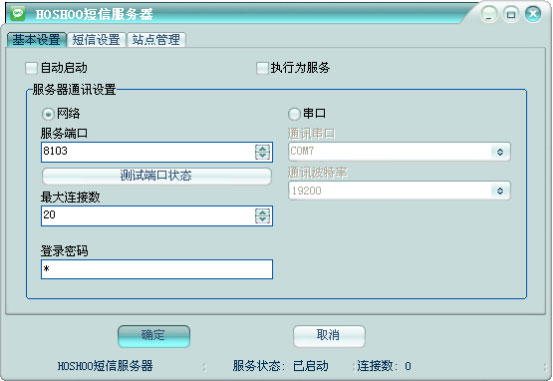 双击Windows的桌面上的【HOSHOO短信服务器】快捷方式可以快捷启动短信服务器。