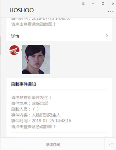 在系统设置事件即可让人脸识别结果可进行短信/微信推送。