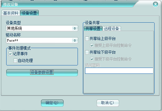 设备共享:共享给上级平台:将该设备共享给上级平台,以便上级平台通过网络可使用该设备;接受上级平台控制命令,设置是否允许上级平台对设备发送控制命令。共享给下级平台:将该设备共享给下级平台,以便下级平台通过网络可使用该设备;接受下级平台控制命令,设置是否允许下级平台对设备发送控制命令。可设置共享出去时的访问密码,两边密码要一致时,方可访问。对应远程平台共享设备:可使用其他平台的共享设备,选择与本平台连接的远程平台的名称后,再选择该平台的共享的设备,则当前设备为远程平台所对应的共享设备,可通过网络访问这个远程设备。可设置共享设备的访问密码,要与被共享设备设置的访问密码一致时,方可访问。对共享设备提供访问保护。