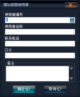 右键菜单,点击【增加】,将弹出增加报警使用者框,如下图: