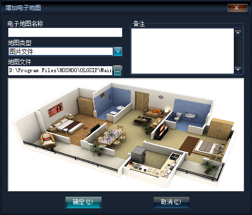 地图文件:如果地图类型为图片文件,则指定该地图对应的图片文件,在下部有预览。