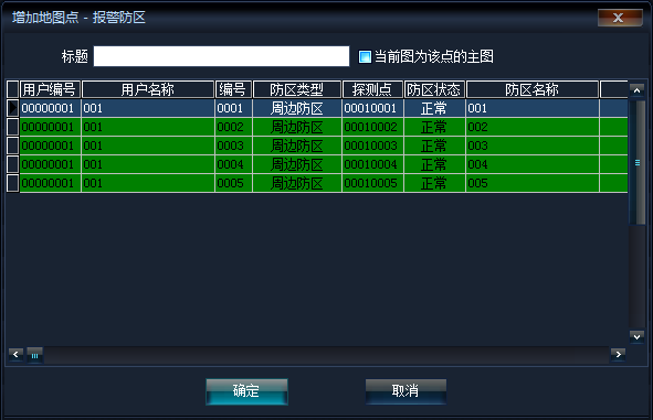 在电子地图右键菜单,点击【增加报警防区】,将弹出增加地图点 - 报警防区框,如下图: