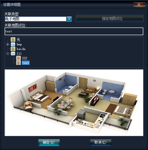 在电子地图树中选择要关联的详细地图;选择无,则为清除取消详细图关联。