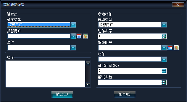 右键菜单,点击【增加】,将弹出增加联动设置框,如下图: