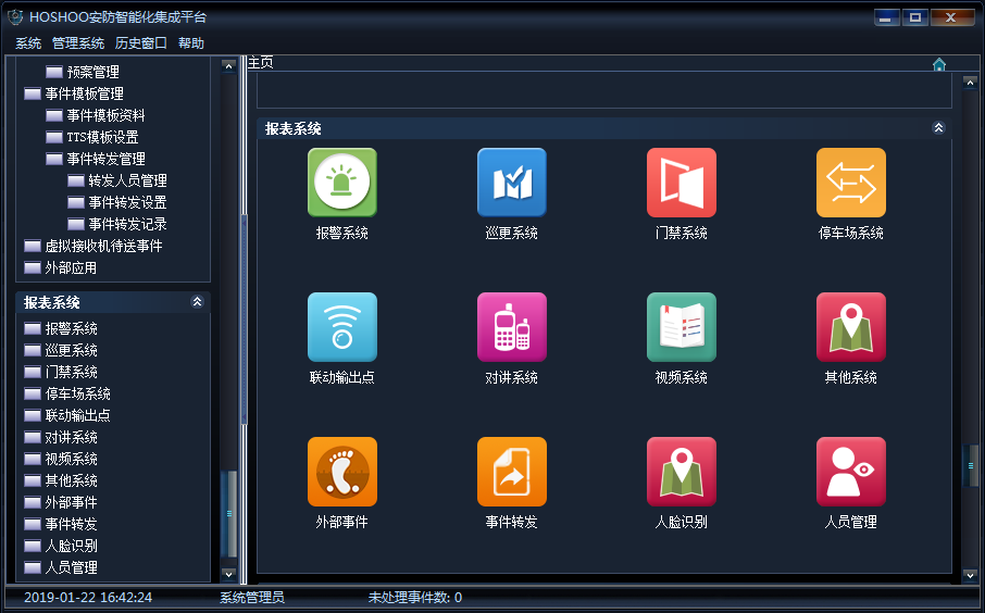 状态栏:显示相应的平台信息。第一项是当前系统时间,每二项是未处理事件数,第三项是当前游览数据的记录数信息。