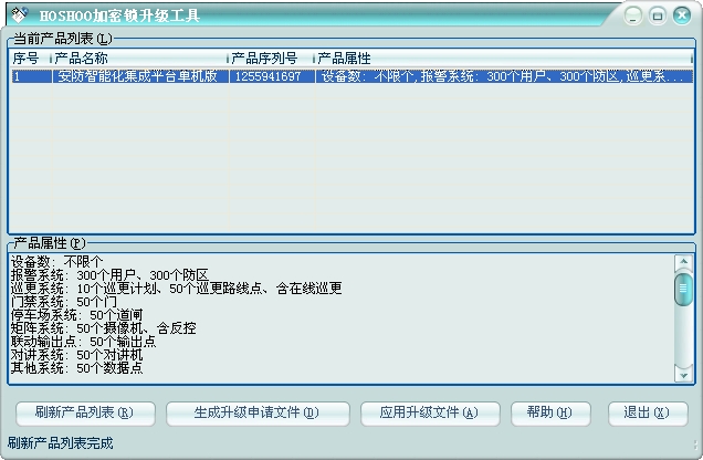 4、单击【刷新产品列表】按钮,显示当前加密锁产品名称及产品属性。