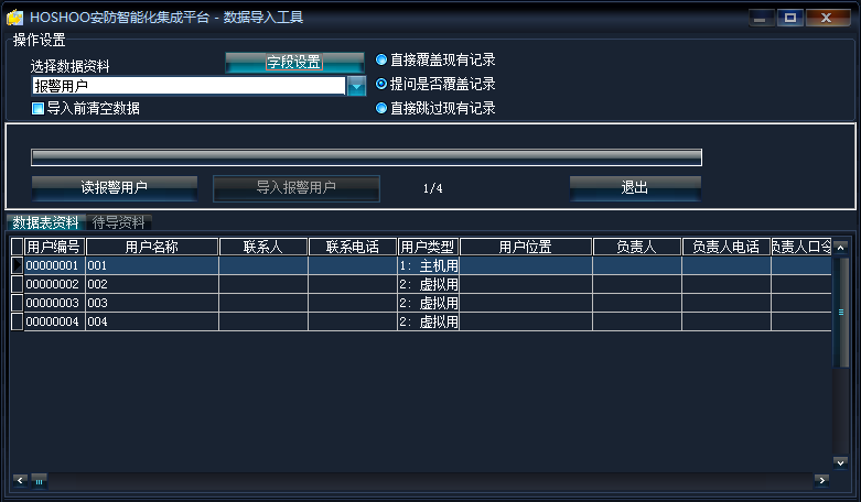 将安装光盘里“数据导入工具”目录下的OLGSIPID.exe复制到集成平台安装目录运行,主界面如下: