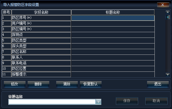 以报警防区资料导入为例,首先在【选择数据资料】中选择警报防区,点击【读报警防区】按钮选择要导入的Excel数据,点击【字段设置】按钮,显示如下图: