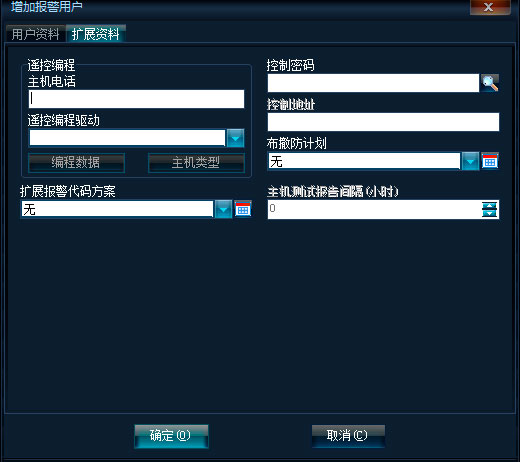 可录入报警用户的联系信息和主机类型及用户备注。
