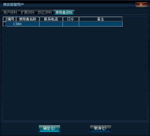 当修改报警用户时,还会有防区资料和使用者资料录入。