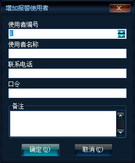 右键菜单,点击【增加】,将弹出增加报警用户框,如下图: