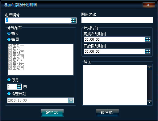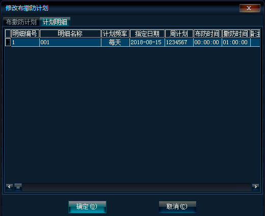 布撤防计划:指定用户的布撤防计划。