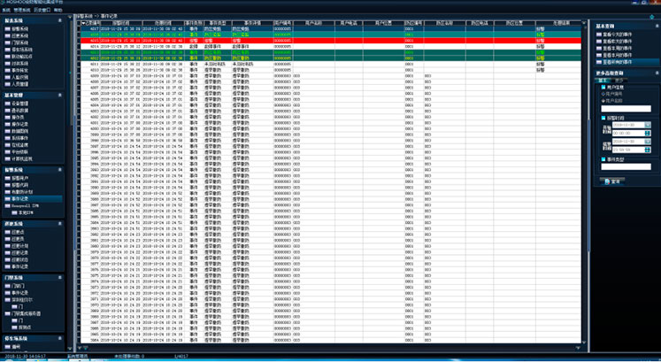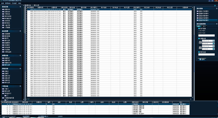 在平台软件中操作面板里的门禁系统面板组上,点击【事件记录】,功能区将显示门禁事件记录数据网格,如下图: