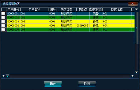 修改报警用户时,显示防区资料选项页。如下图: